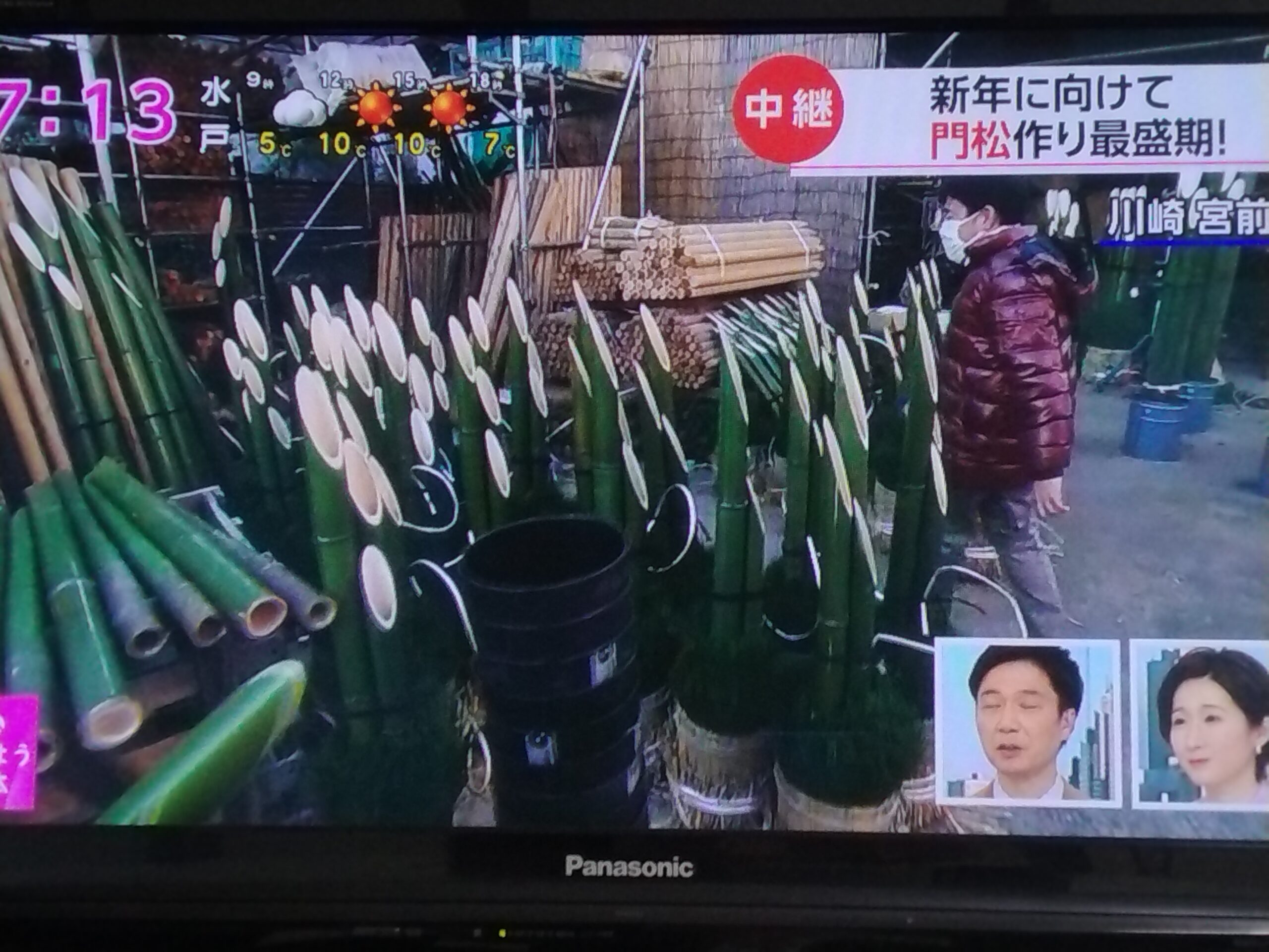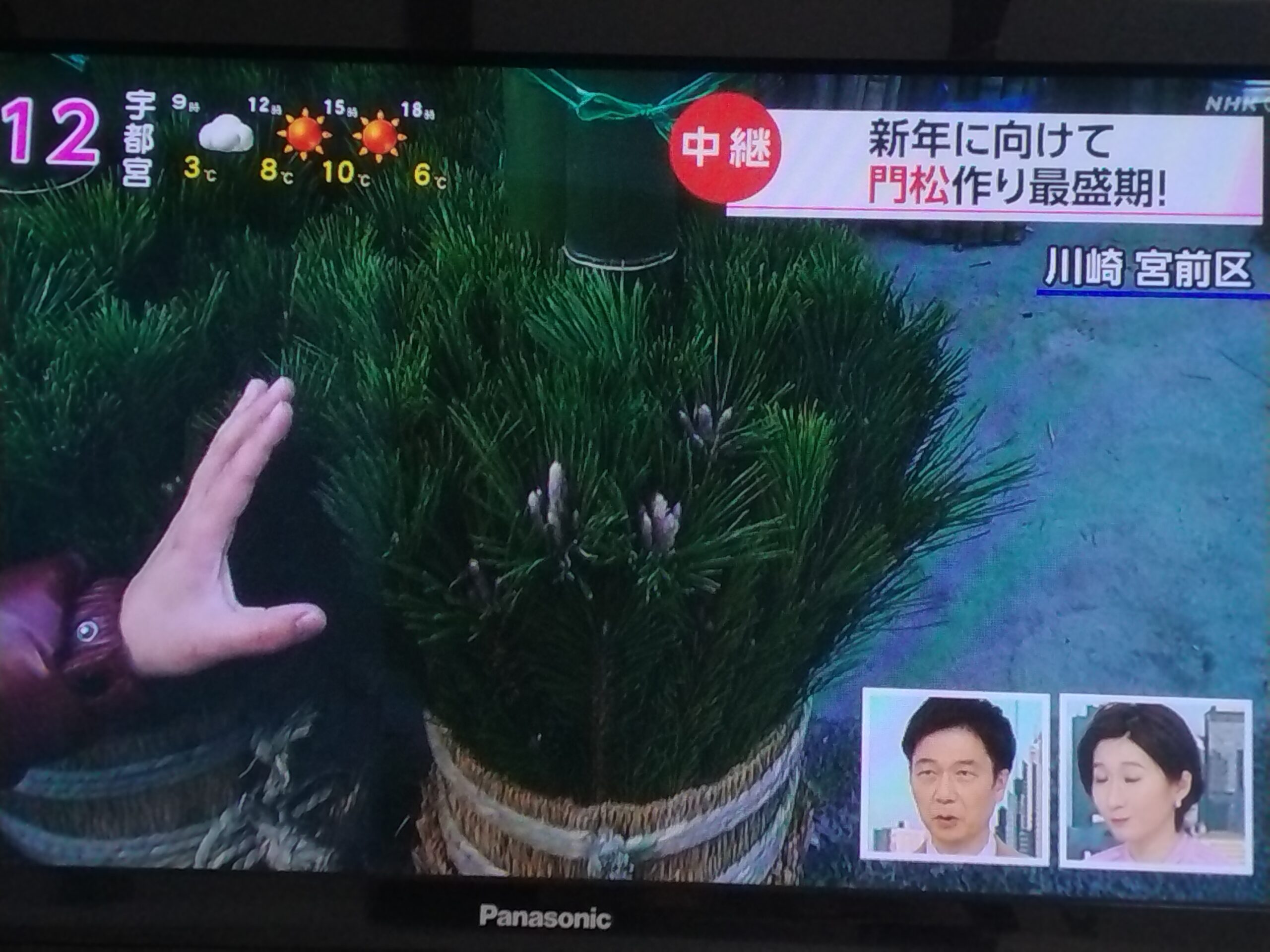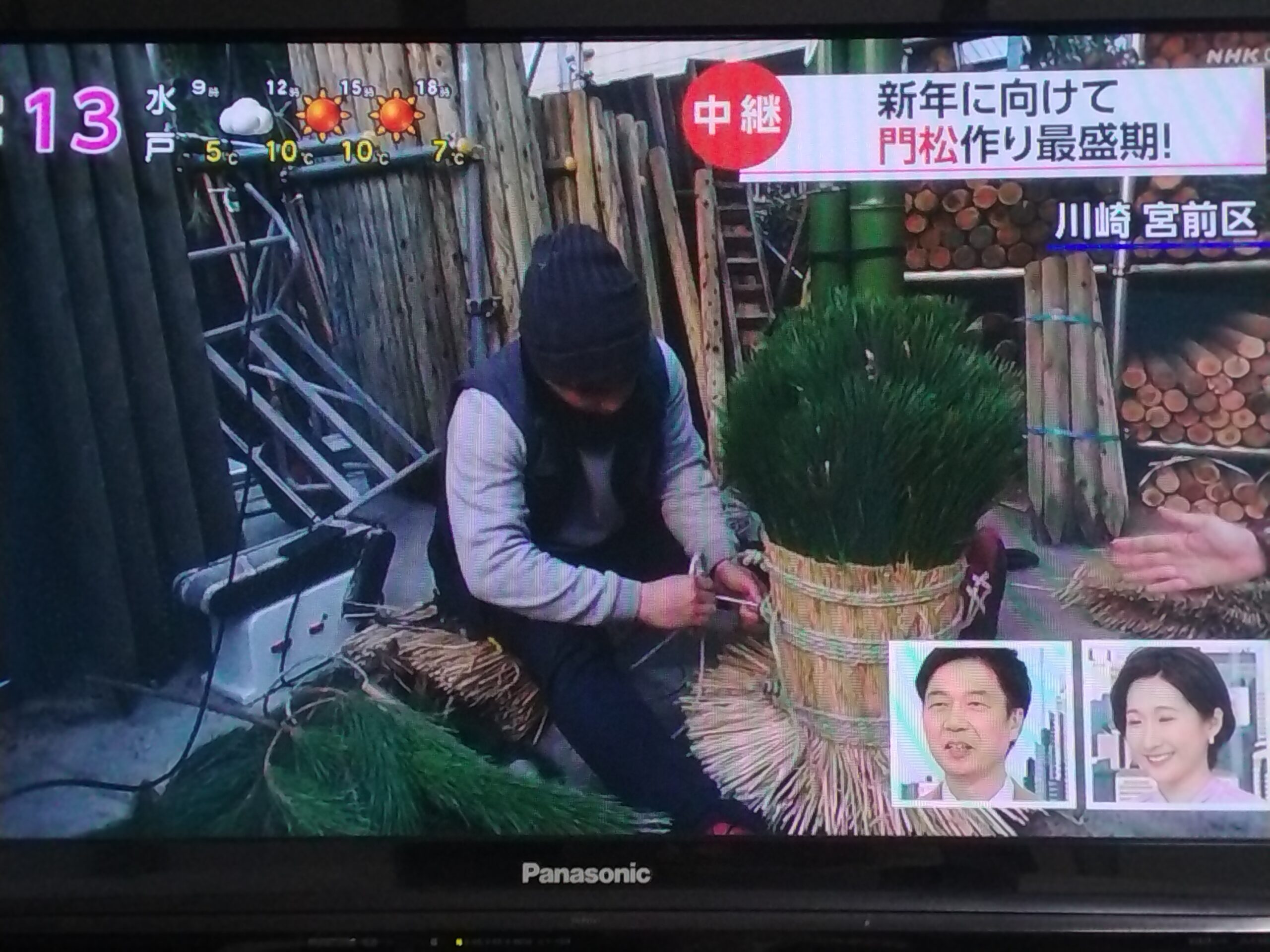 2023年1月27日 / 最終更新日時 : 2023年1月27日 wp-xrfu5sd テレビ取材 NHKおはよう日本に取材されました! 昨年の12月24日にNHKの「おはよう日本」で取材を受け、中継放送されました。前日に突然お話をいただき、ぶっつけ本番での取材で緊張しました。年末で超忙しいのは?というコンセプトで、門松制作を題材に取材いただきました。ありがとうございました。 テレビ画面のキャプチャー画像ですが、ランダムに紹介させていただきます。初めてのことなのでコチコチの表情ですが、何とか初出演を果たしました(笑)。 NHKおはよう日本出演! \ 最新情報をチェック / 関連 FacebookXBlueskyHatenaCopy